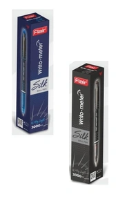 - The Flair Silk Writometer is a ballpoint pen that can write up to 10,000 meters. The pen has a special stainless steel tip and a smooth ink flow system. The pen is available in black ink and blue ink.