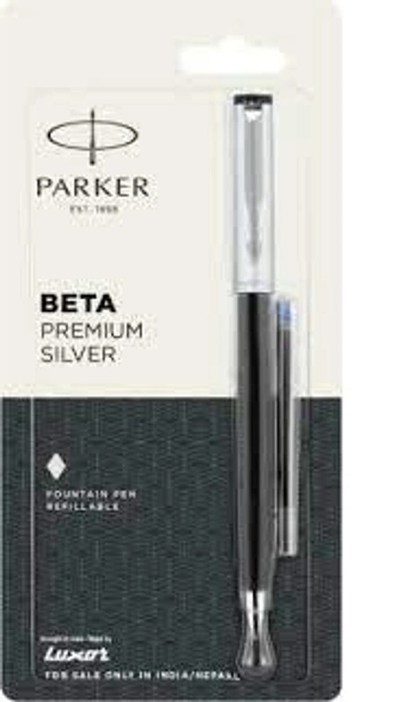 FOUNTAIN PEN • Cap on/cap off action. • Fitted with stainless steel nib. • Standard nib grade available in fine.• Fitted with Ink Converter. • Refillable Pen. • For refilling, use ink cartridge or ink converter with ink bottle. • Gift Oriented Full Blister Packaging.If you’re looking for a classic fountain pen, look no further. Beta Premium Fountain Pen with stainless steel trim has a distinctive barrel and a cap in a premium finish with stainless steel plated clip. All these elements come together to make a pen that is beautiful yet functional.